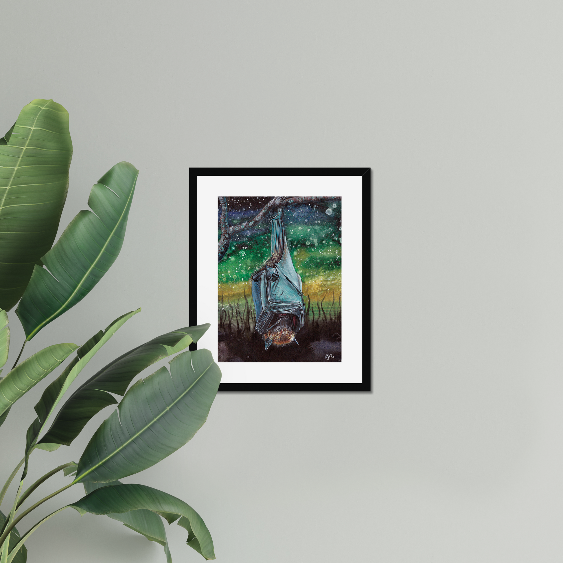 A framed print (the same 315gsm 100% cotton rag paper) with sustainbly sourced wood frames available in different colours, with a “conservation grade”, sustainably sourced, 100% acid free mount.